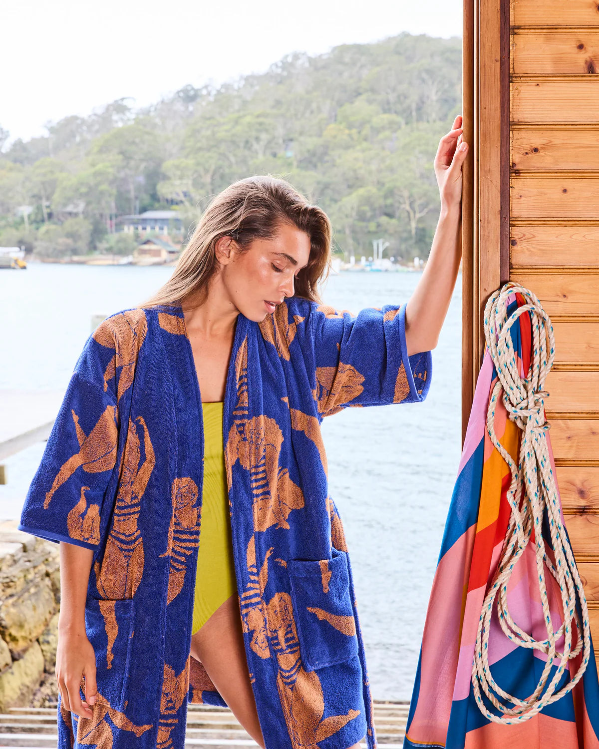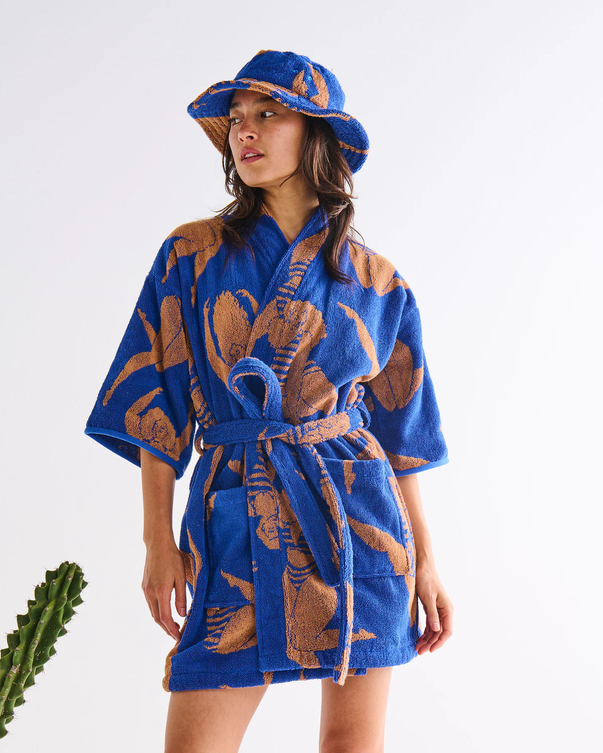 Wrap yourself in the sweet embrace of our Sun Kissed Terry Mini Bath Robe, the ultimate post-swim, post-shower, feel-good favourite. Made for beach days, bath nights and everything in between, it’s soft, snuggly, and seriously comfy. With its easy-breezy length and plush cotton feel, it’s perfect for salty shoulders, steamy bathroom bliss or lounging like a pro. Made from 100% cotton terry featuring golden goddesses on a rich blue terry base, it's like a wearable towel, but so much cuter! Beach babes, this one's for you.