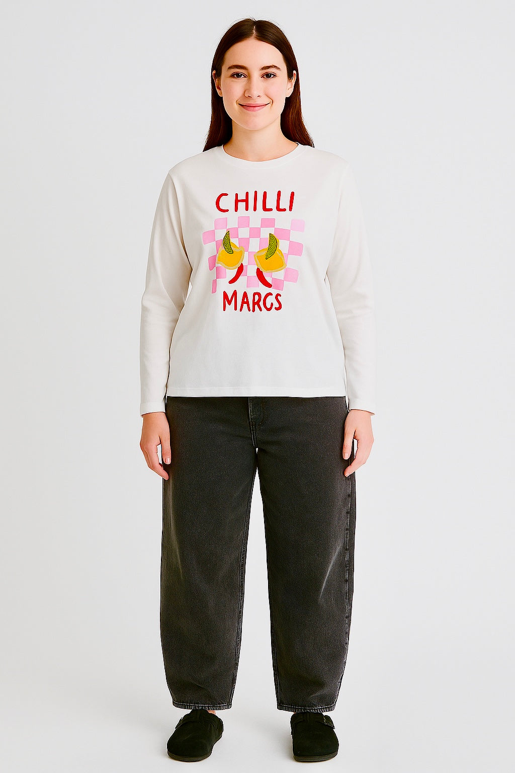 Spice up your off-duty days with the Chilli Margs Long Sleeve Tee — a crisp white cotton essential with a cheeky splash of colour and fun. Featuring a hand-painted style motif of clinking margarita glasses and bold CHILLI MARGS lettering, this tee is the perfect mix of relaxed comfort and statement energy.