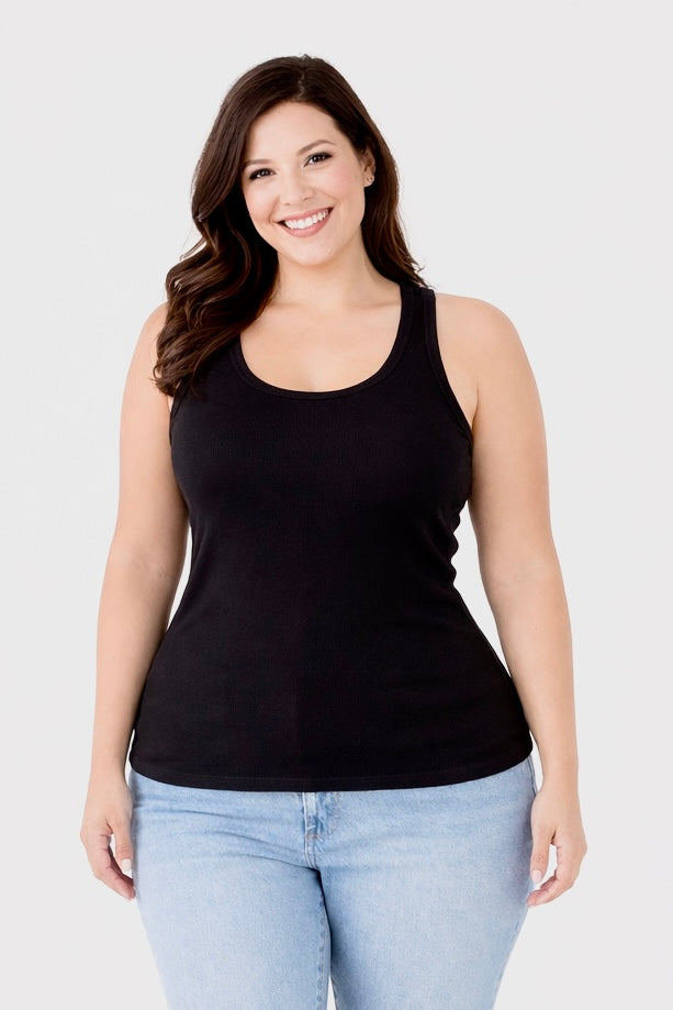 The black rib tank is made from a soft luxe cotton elastane blend that moves with you. Designed with a classic scoop neckline and ribbed texture, it feels as good as it looks — easy to layer or wear solo through the warmer months.